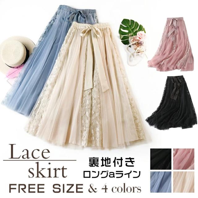 リボン×プリーツの女性らしさ溢れるデザインを詰め込んだフェミニンなチュールスカート リボン付き ベロア マキシ ロングスカート フレアスカート マキシスカート ファッション