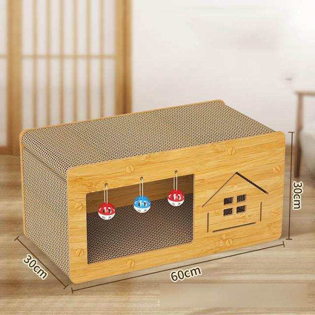 ●猫用爪とぎ キャットハウス キャットタワー ダンボールハウス 爪とぎ兼ベッド 猫箱 高密度段ボール ストレス解消