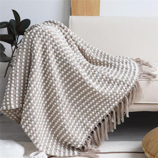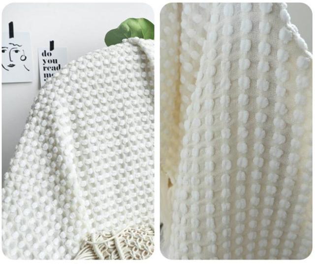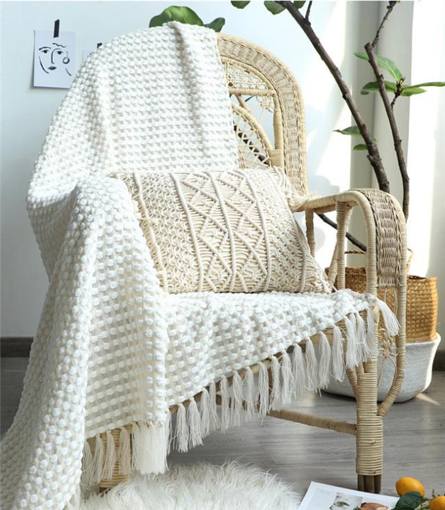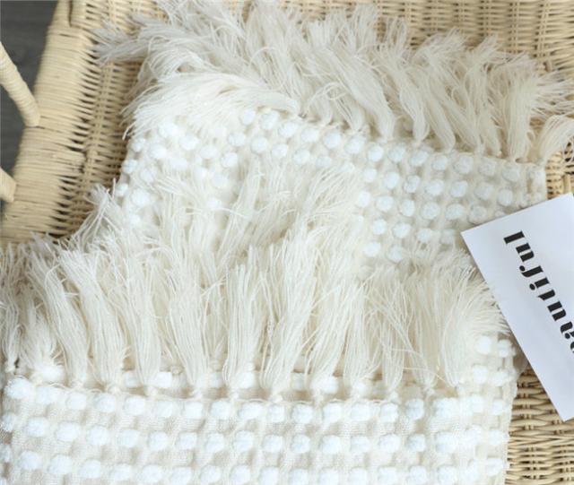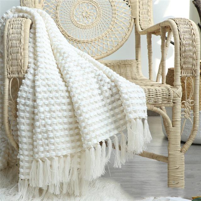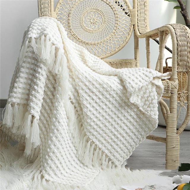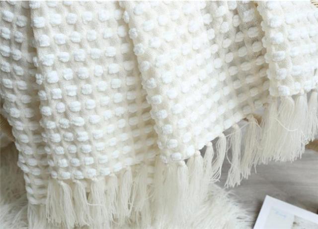 タッセル付きブランケット 大判毛布 ブランケット おしゃれ マルチカバー タオルケット アイボリー ニット冷房対策 フリンジ ソファ 北欧 ベッドカバー オールシーズン インテリア ソファーカバー ポ