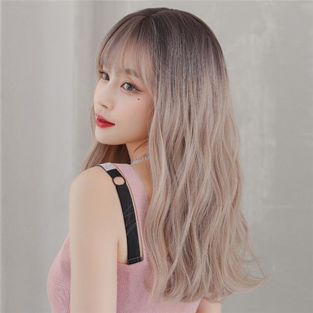 53cm長髪 ロング ロリータ 原宿風 巻き毛 ぱっつん前髪 ゆめかわ カール パーマ 可愛い ロング 耐熱ウィッグ コスチューム 仮装 自然 ナチュラル イベント 文化祭 普段使いかつらレディースウ
