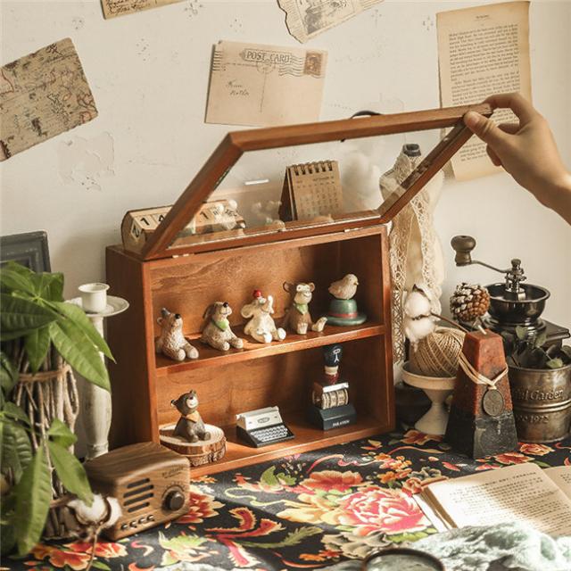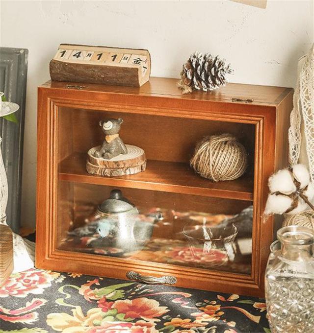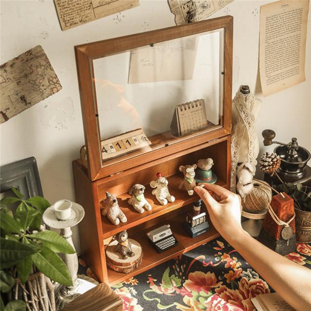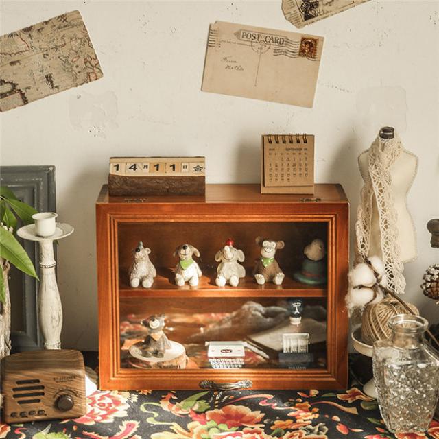 木製 ミニチェスト 卓上 アンティークウッド 小物入れ 2段収納ボックス おしゃれ デスク収納 かわいい 収納 卓上収納 卓上チェスト 卓上収納ボックス 机上収納 ブラウンガラス展示ケース人形収納展示