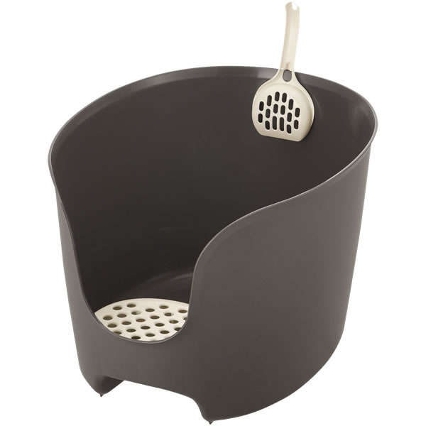 リッチェル 猫 トイレ ラプレ 壁高ネコトイレ ダークグレー | おしゃれ 猫砂 飛び散らない ペット キャットトイレ ネコ ねこ スコップ付き 砂落とし 猫トイレ 猫のトイレ