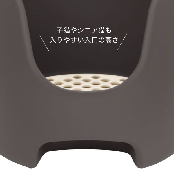 猫砂がとびちりにくい壁が高いので、砂かきによる猫砂の飛び散りを軽減。