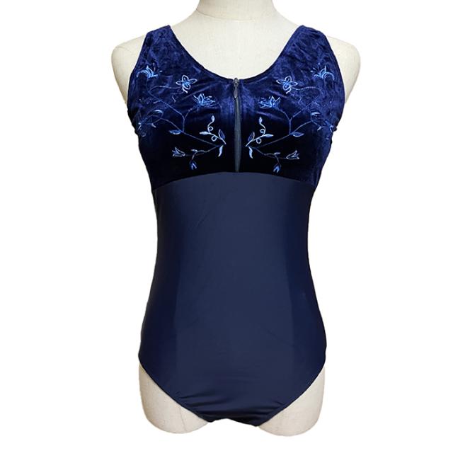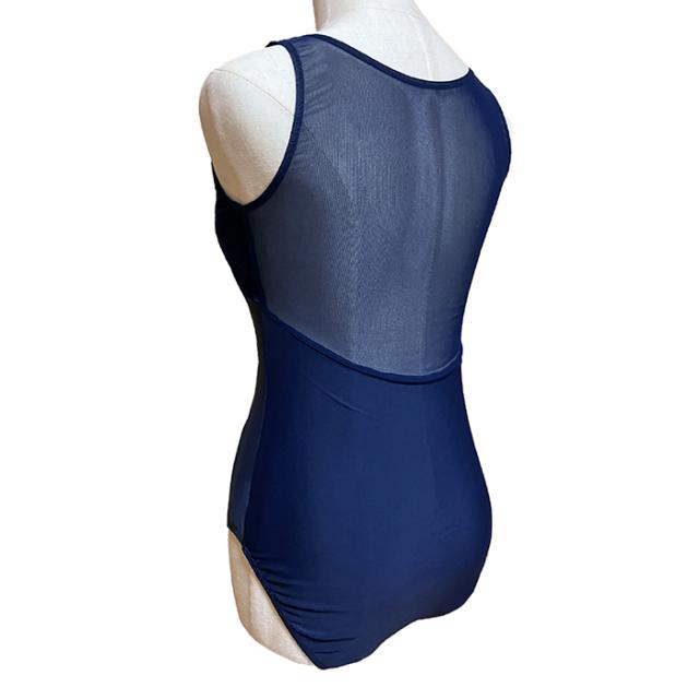 【色サイズ交換無料】透け感あるメッシュで背中をすっきり、胸元は可愛い花柄の刺繍付き チャック付き 練習着 バレエウェア 紺 ネイビー おとな デザイン バレエレオタード