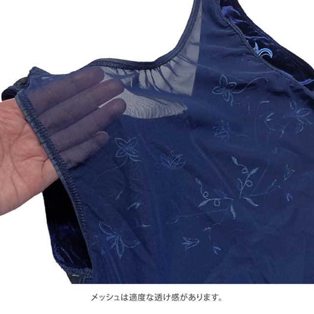 バレエ レオタード 【サンシャ】 50BA1152P (Artemis) アルテミス ベロア 刺繍 タンク レオタード 大人 ジュニア タンクトップ メッシュ おしゃれ ストレッチ 伸縮 花柄 レッスン 練習 着 シンプル デコルテ きれい チャック ネイビー 紺 145 150 155 160 165 170