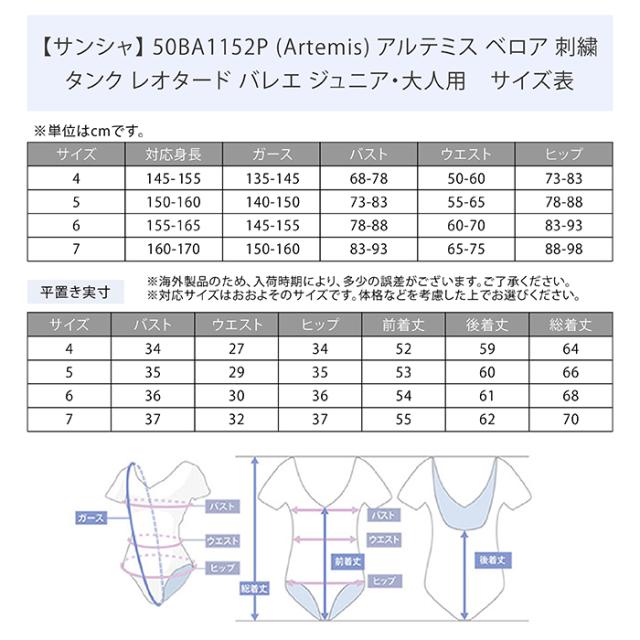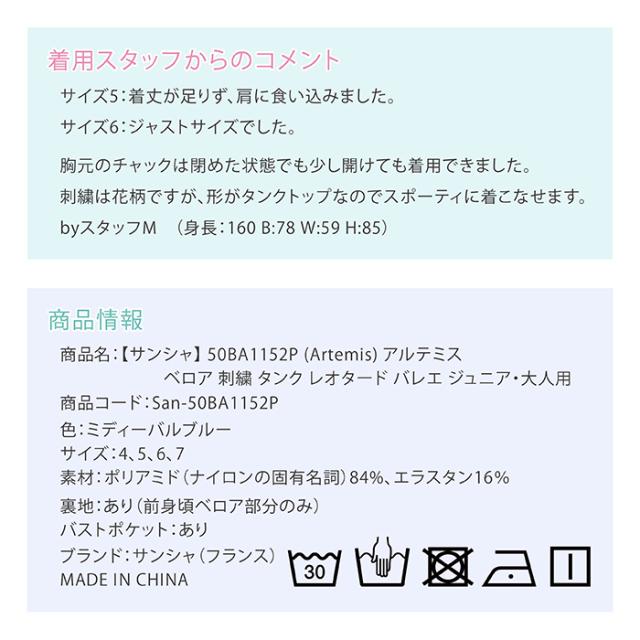 商品名:【サンシャ】 50BA1152P (Artemis) アルテミス ベロア 刺繍 タンク レオタード バレエ ジュニア・大人用