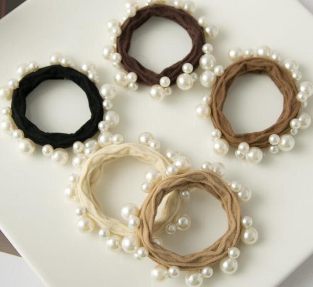 パール ヘアゴム 5本セット おとな かわいい ビーズ 髪飾り 5色 でこぼこ ヘアアクセ