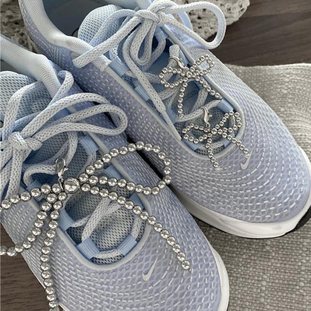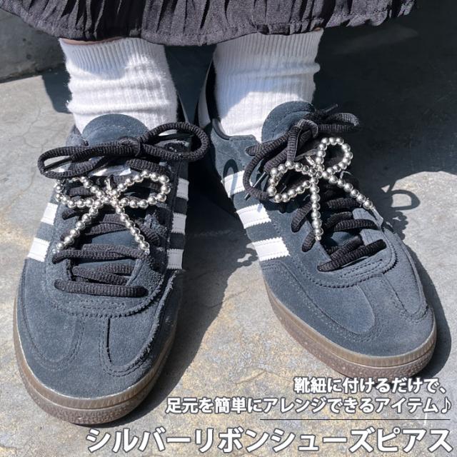 新作 選べる2サイズ シルバー リボン シューズピアス Mサイズ Lサイズ 2個セット レディース シューピアス スニーカーピアス シューアクセ チャーム シューパーツ 靴 スニーカー アクセサリー ボールチェーン