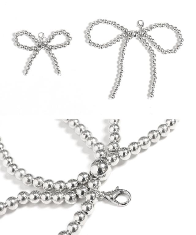 クールなシルバーボールチェーンに可愛いリボン型で、