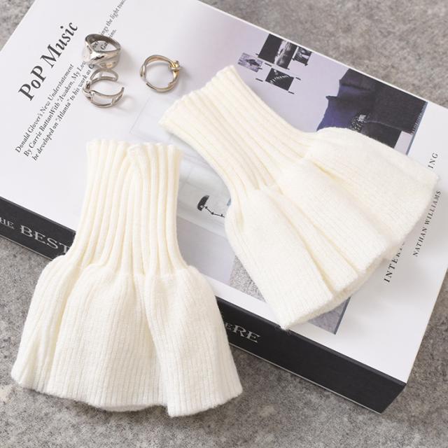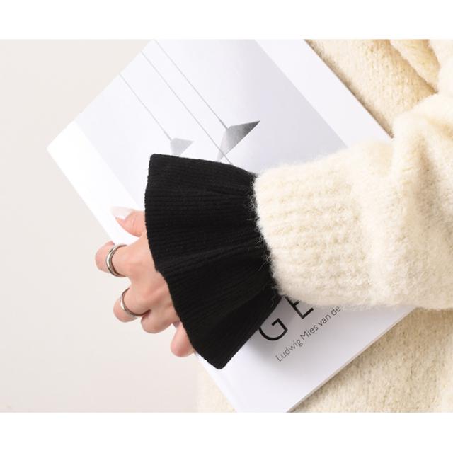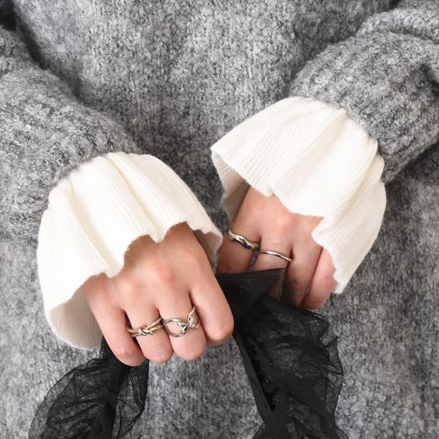 新作 シンプル フリル やわらか ニット つけ袖 レディース 手首 フレア袖 アクセサリー 小物 暖かい あったか 柔らかい おしゃれ かわいい 上品 きれいめ 華やか エレガント 大人 デイリー ホワイト ブラック ワンタッチ