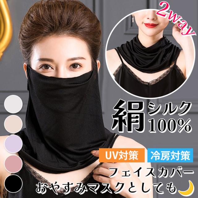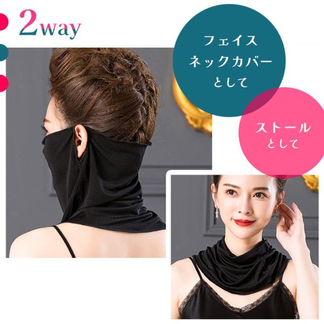新作 シルク100% なめらか 耳かけ 2way フェイスカバー ネックカバー レディース 付け襟 つけ襟 フェイスマスク ネックガード シルク UVケア 紫外線対策 日焼け防止 薄手 シアー 涼しい 夏 おしゃれ
