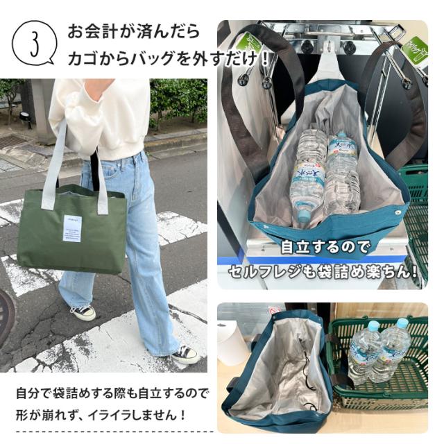 バイカラー×タグデザインがおしゃれな保冷自立エコバッグ