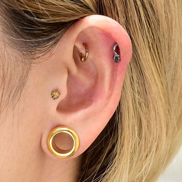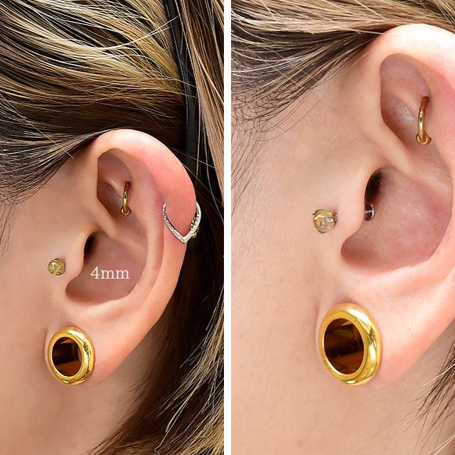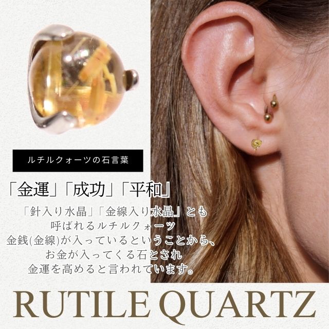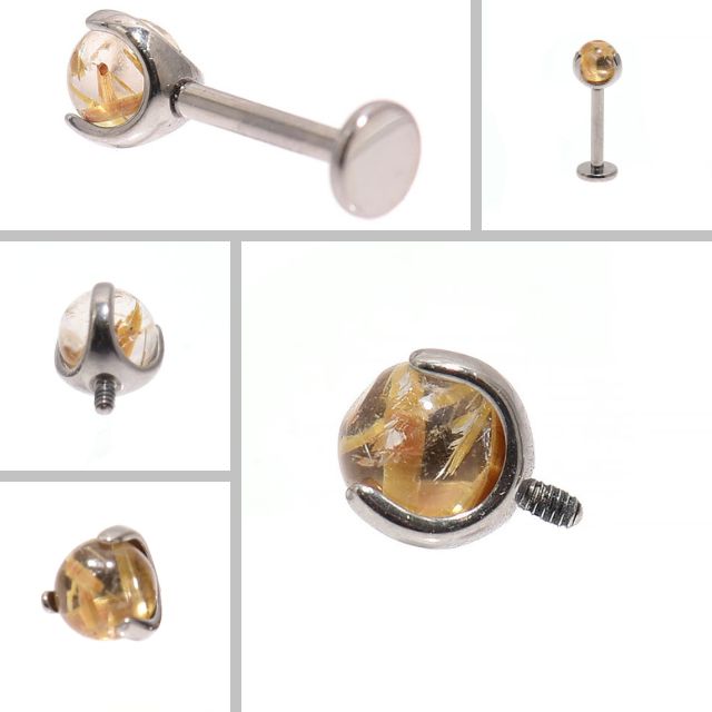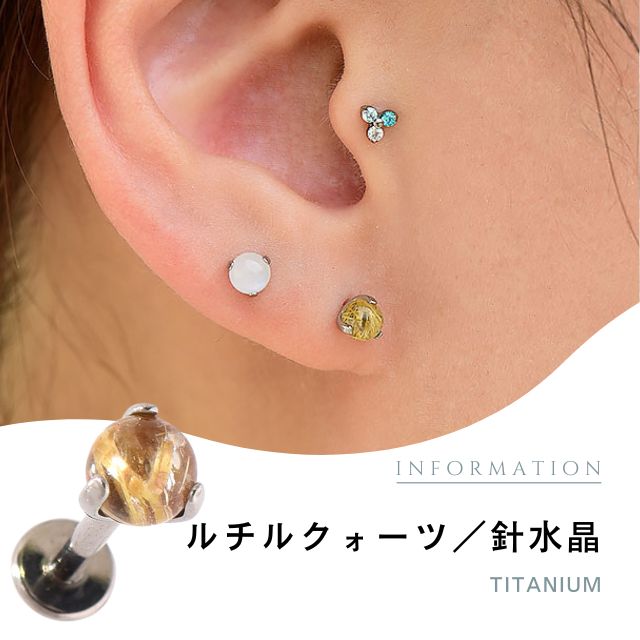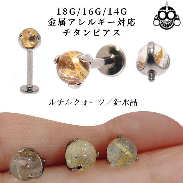 ルチルクォーツ 天然石ピアス 18G 16G 14G インターナル ラブレット 金属アレルギー対応 チタンピアス つけっぱなし ロブ ヘリックス インナーコンク アウターコンク ボディピアス