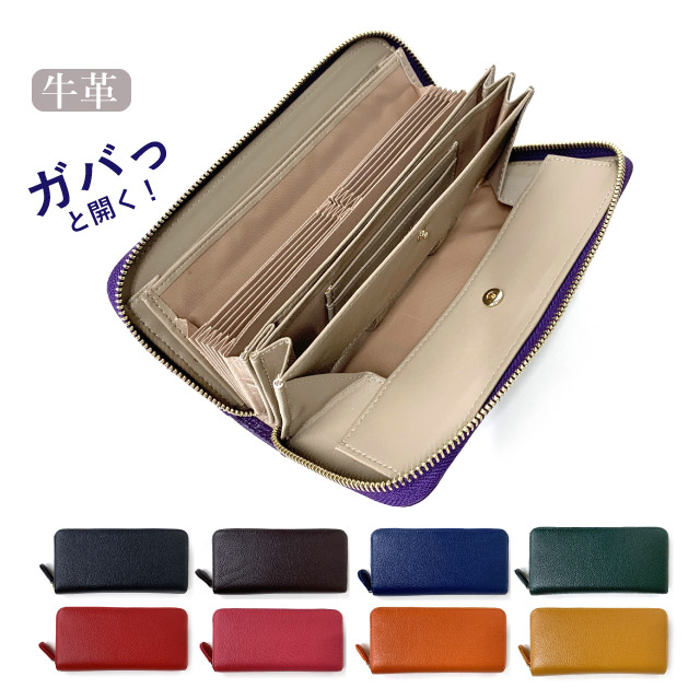 Melody レザー ギャルソン カラフルでかわいいラウンドファスナー長財布。牛革を使用しています。 カード収納、小銭入れ付きで大容量。ガバッと開いて見やすく取り出しやすい。 プレゼント・ギフトにも人気です。