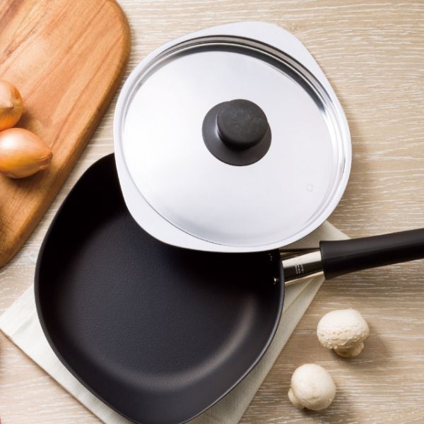 直径約18cmフライパン(蓋付)1個・本体:マグマプレート(鉄)・フタ:ステンレス・ハンドル、ツマミ:フェノール樹脂・[日本製]