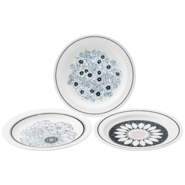 直径24cm高さ3cmパスタプレート3枚(3柄)・磁器・[日本製]