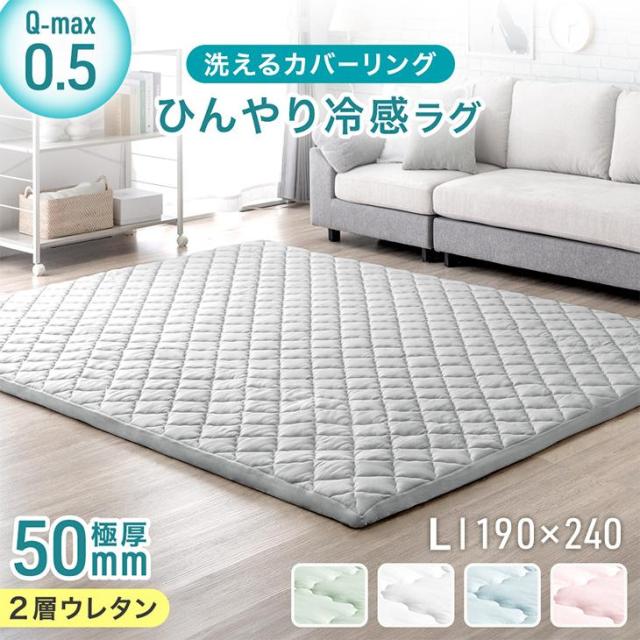 ひんやり冷感 ラグ 2.5畳 夏用 極厚50mm 洗える カバーリングラグ 2層ウレタン Q-max0.5 防音 抗菌 防臭 防ダニ 滑り止め 床暖房 190×240 冷感 ラグマット ラグ ひんやり 冷感ラグ カーペット 接触冷感ラグ ラグ 絨毯 カバー