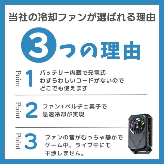 「パワフルな冷却力で、どんな場面でもスマホをクールに!」