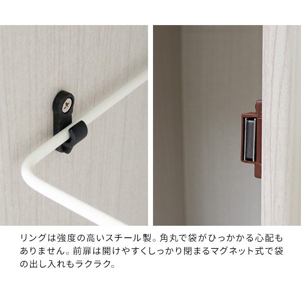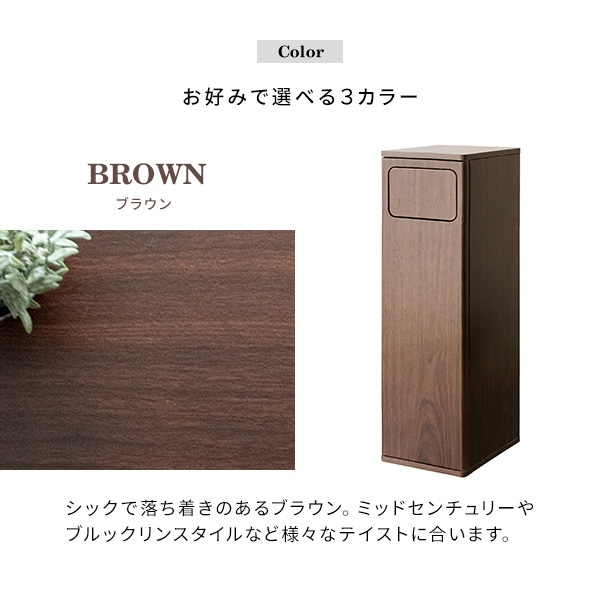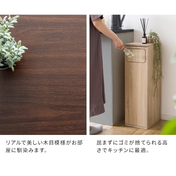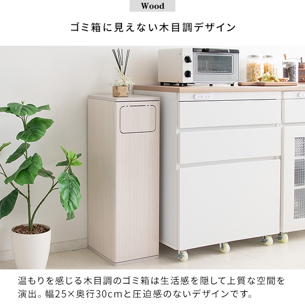 ニオイが漏れにくく押すだけで簡単に捨てられるプッシュ扉式でゴミ捨てがラクラク。幅25cmとスリムタイプなので省スペースでキッチンやカウンターの隙間に置けます。