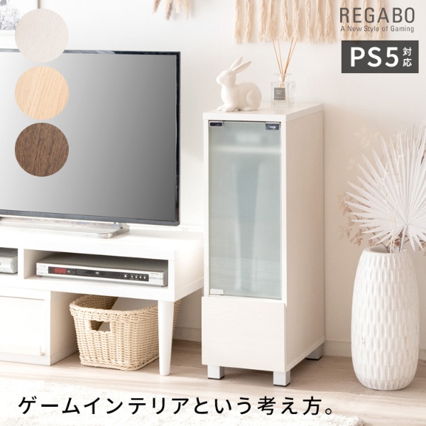 デザイナーズゲームラック REGABO レガボ ゲーム機ラック ゲーミングラック リビング収納 プレステ5収納 リビングラック 木製ラック PS5 プレイステーション5 PlayStation 5 ガラス扉 コントローラー収納 引き出し ゲームソフト ホワイト ブラック ナチュラル 木目調 シンプルモダン 北欧 ミッドセンチュリーNintendoSwitch 任天堂スイッチ収納