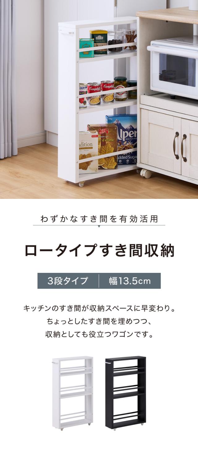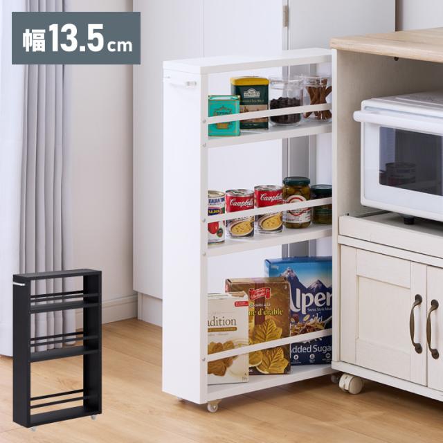 キャスター付き すき間収納 幅13.5cm ロータイプ スチール 食器棚 隙間収納 すき間 収納 ラック コンパクト キャビネット スチール製すき間収納 キッチン収納 シンプル キッチン 収納 サニタリー収納【送料無料】