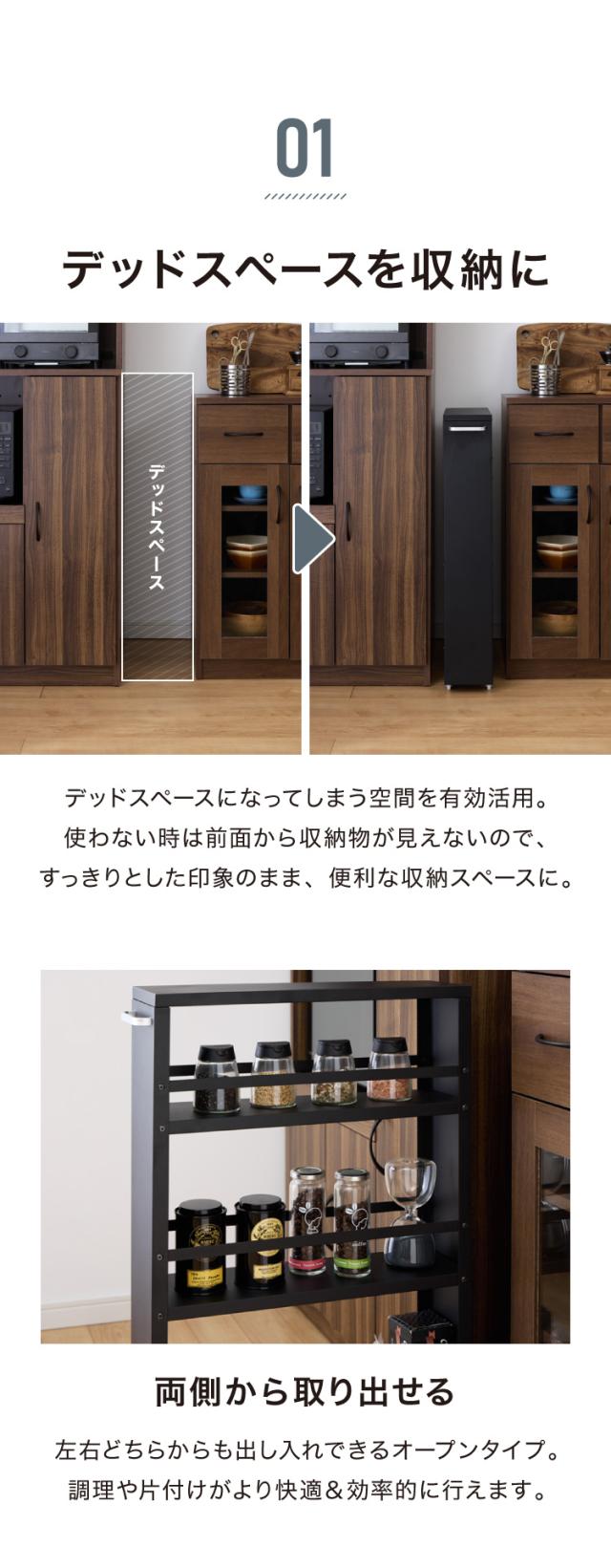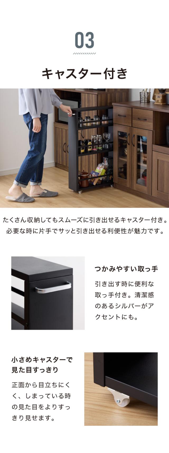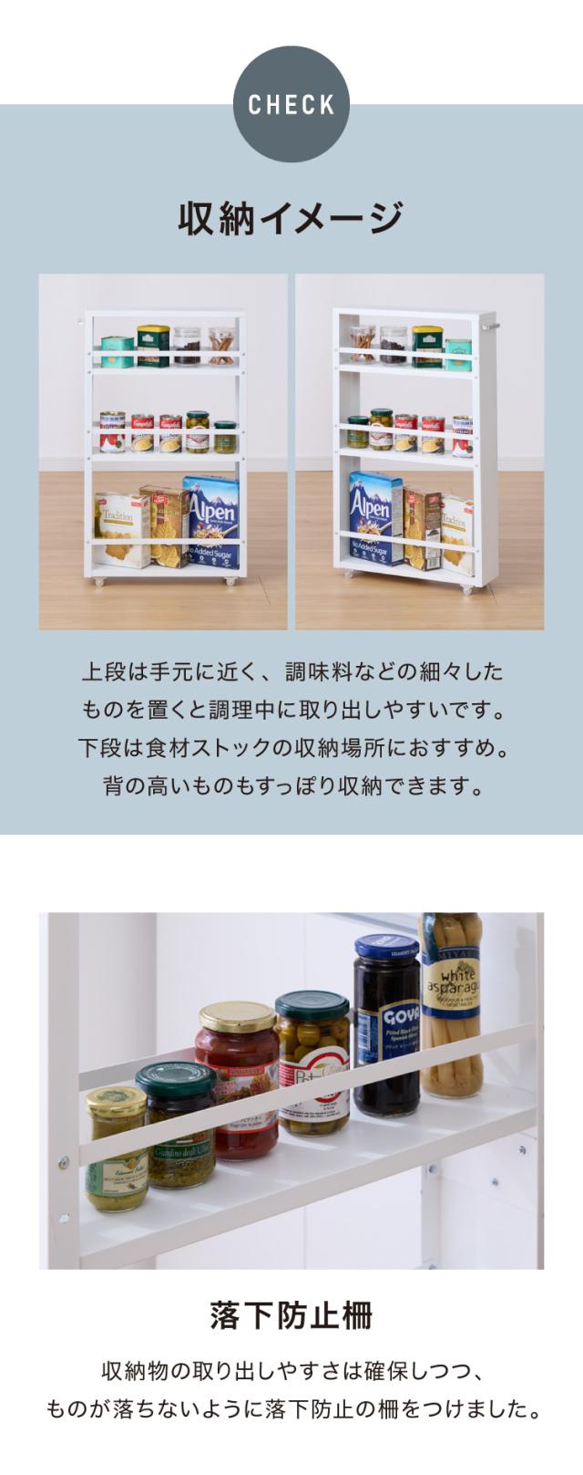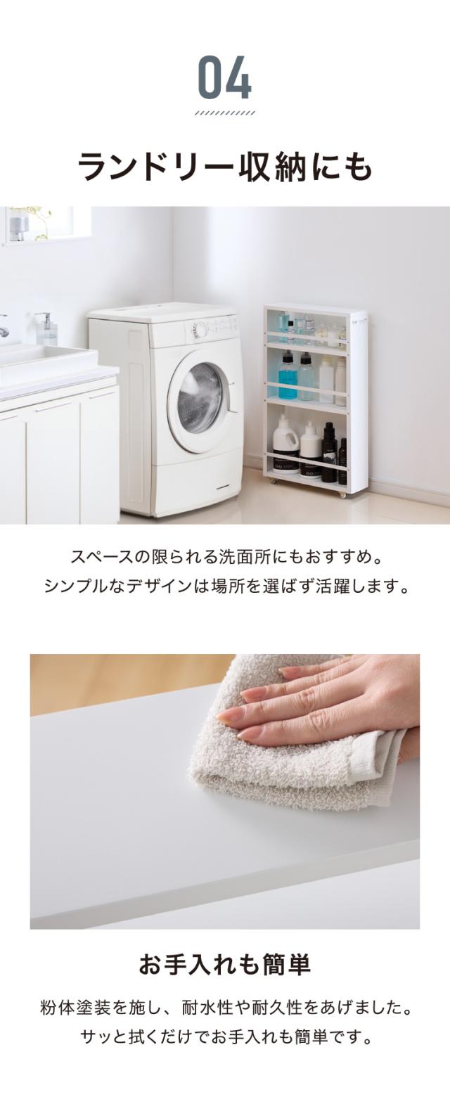 ・キッチンや洗面所など空いているすき間を有効活用できるすき間収納です。