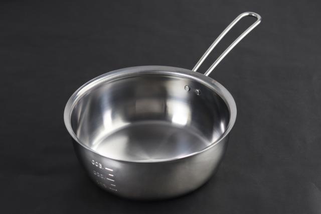 少し傾斜のついたフチ形状で、360度どこからでもきれいに注げるようになっています。スープやお味噌汁をお椀に移したり、インスタントラーメンを作る時にも便利です。