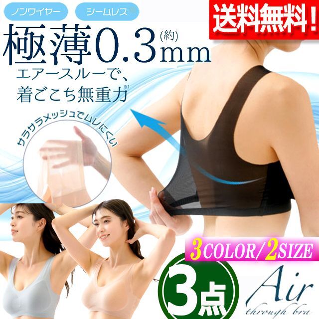 3点 ブラジャー 下着 ノンワイヤー シームレス エアースルー バスト パッド内蔵 (極薄0.3mm着ごこち無重力!エアースルーブラ 3点)