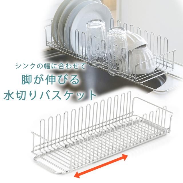 TSUBAME 脚が伸びる 水切り バスケット 日本製 水切りバスケット ステンレス 頑丈 丈夫 清潔 スッキリ 下村企販 水切り 水切りラ シンクをまたげる 可動式 燕三条 ツバメ 国産