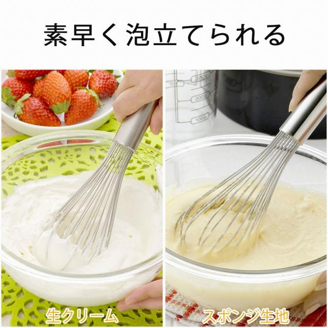 メレンゲもあっという間 ケーキ作りに使ってほしい メレンゲも生クリームも素早く泡立てることができます。ケーキを作るのが好きな人も、これからケーキ作りに挑戦という人にも使ってもらいたい泡立て器です。 | ![]() |
