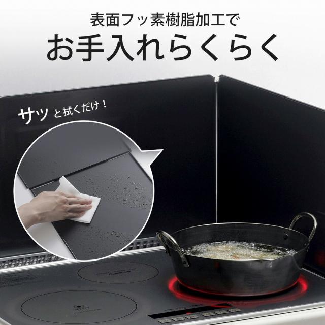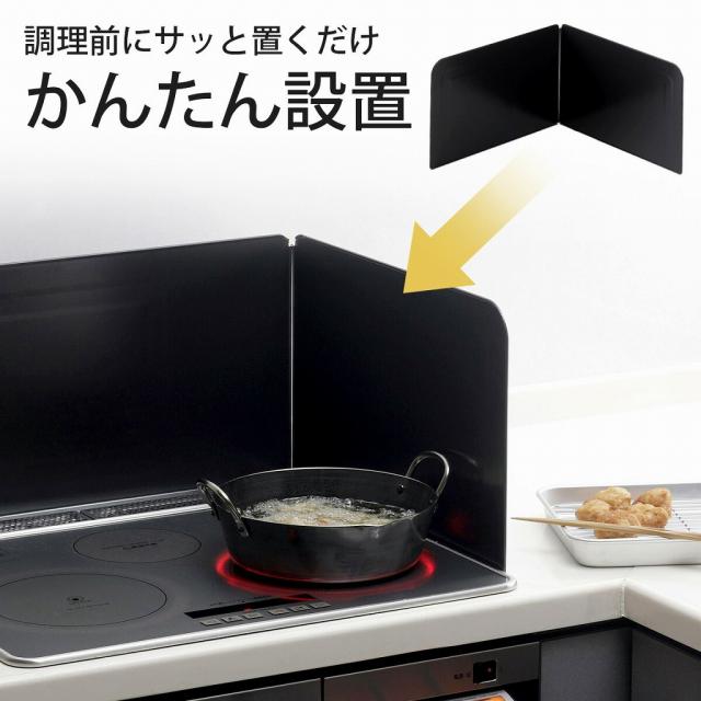かんたん設置 サッと取り出してポンッと立てるだけで油飛び防止! ※ビルドインコンロに対応。 | ![]() |