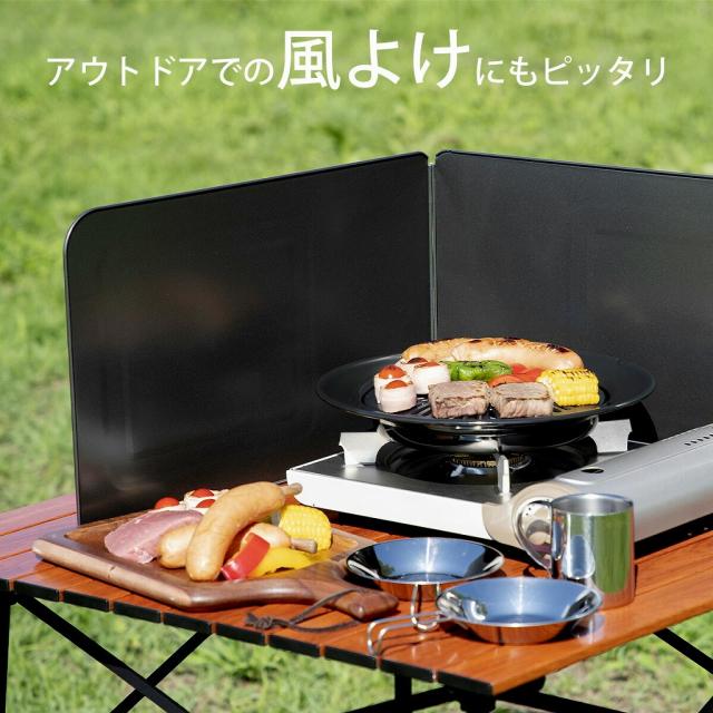 ![]() | アウトドアでの風よけにも 屋外でのコンロ使用時の風よけにもぴったり!場所を取らない極薄仕様。キャンプやBBQの持ち出しにもじゃまになりません。 |