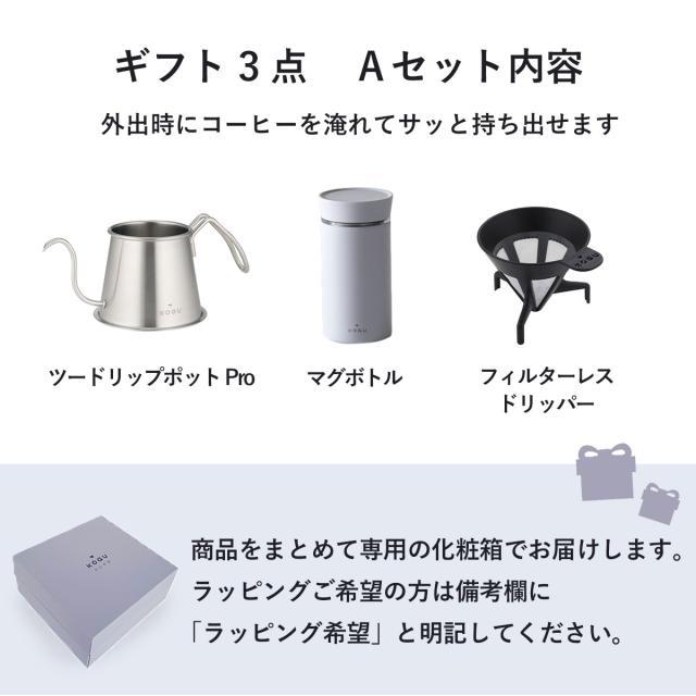 珈琲考具 ギフト 3点 Aセット ツードリップポットPro フィルターレスドリッパー マグボトル コーヒー ハンドドリップ スタイリッシュ IH対応 珈琲考具 セット ギフトプレゼント 人気 コーヒー用品