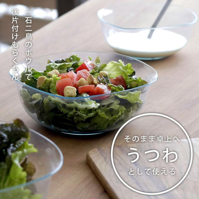 ![]() | 下ごしらえがすんだら そのままテーブルへ まるでガラスのように透明だから卓上でも映える!おかずやサラダを作ったら、そのまま食卓へ。美味しそうに盛り付けできます。 |