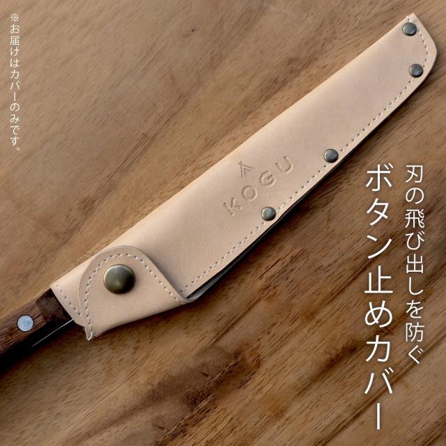KOGUホットサンドナイフのカバー。ボタン止めで刃の飛び出しもしっかり防ぎます。