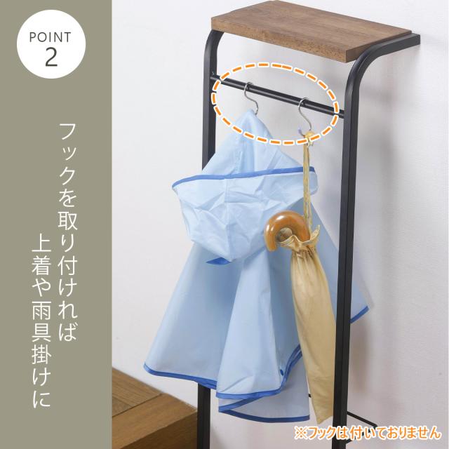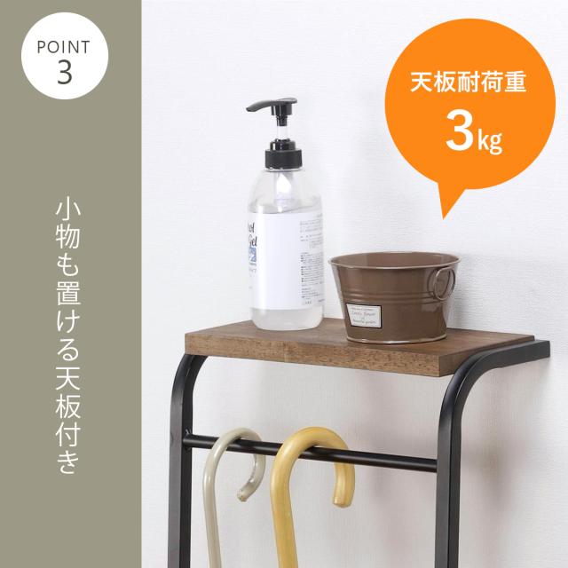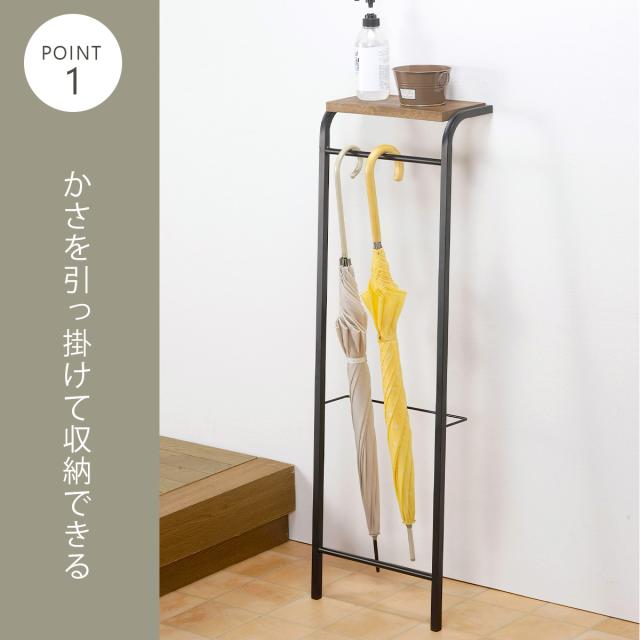 かさを引っ掛けてきれいに収納。天板付きなのでマスクやアルコールボトル、カギの一時置きにも便利。壁に立てかけるだけの簡単設置。