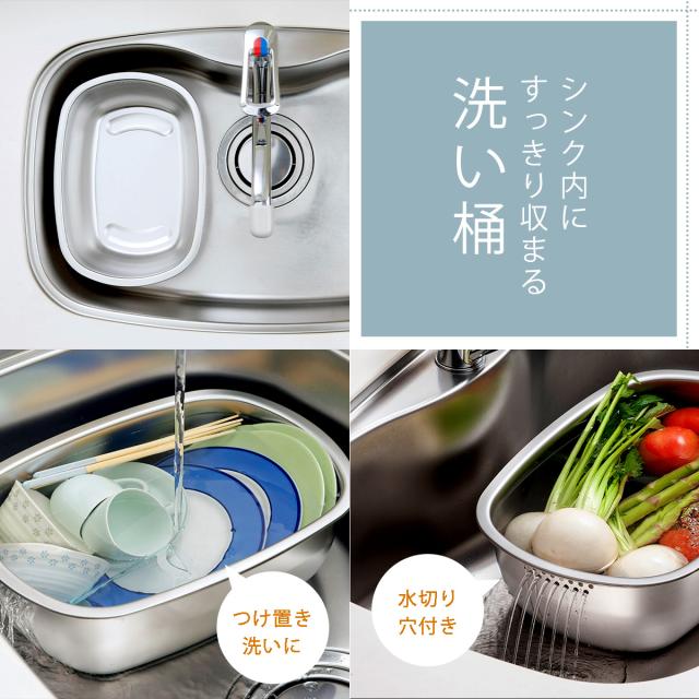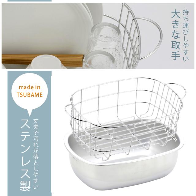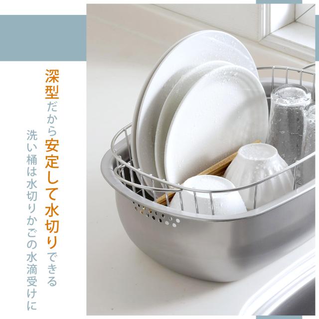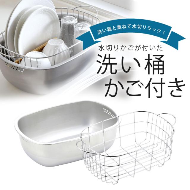 ステンレス の 水切りかご 付き 洗い桶 日本製 水切り洗い桶 水切りラック 兼用 置き型 つけ置き洗い 丈夫 頑丈 食器洗い シンプル 下村企販 シンク周り すっきり 国産 燕三条 ツバメ