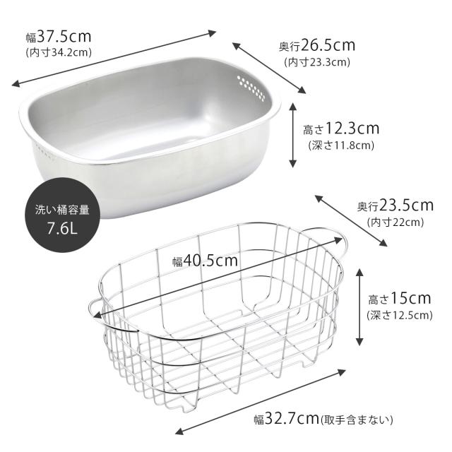 洗い桶内寸:幅34.2×奥行23.3×深さ11.8cm