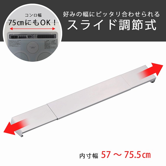 スライド式で すき間なくぴったり置ける! 53.5〜75.5cmに調整できます。らくらくスライド式でお好みの幅にピッタリ調整。 | ![]() |