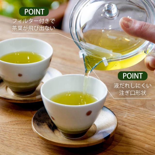驚くほど軽い!割れない! 軽さはガラスや陶器の 半分以下! 液だれしにくい注ぎ口形状 プラスチック製だからできる液だれしない注ぎ口の形。急須内部には茶葉の流出を防ぐクリップ式のフィルター付き。 | ![]() |