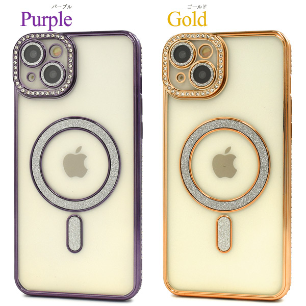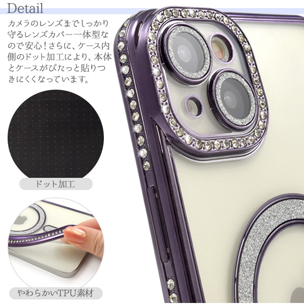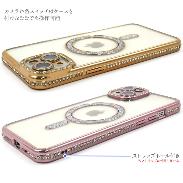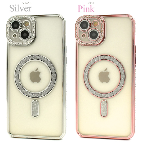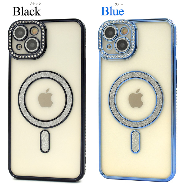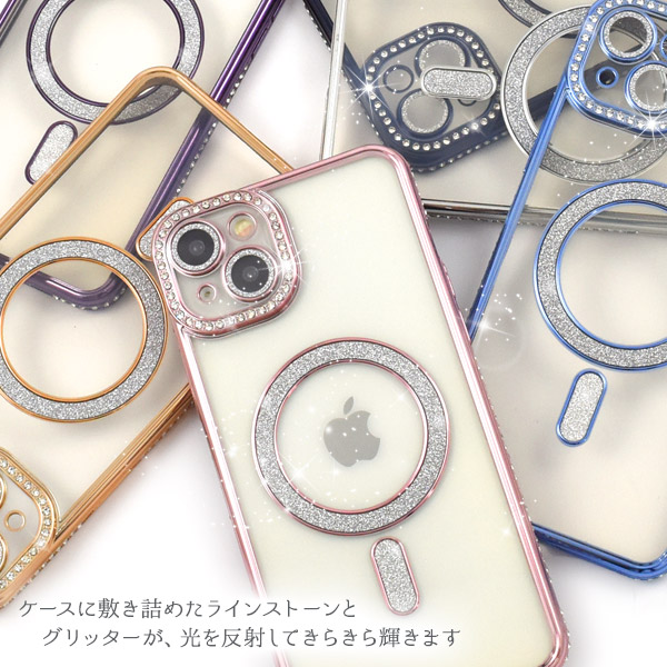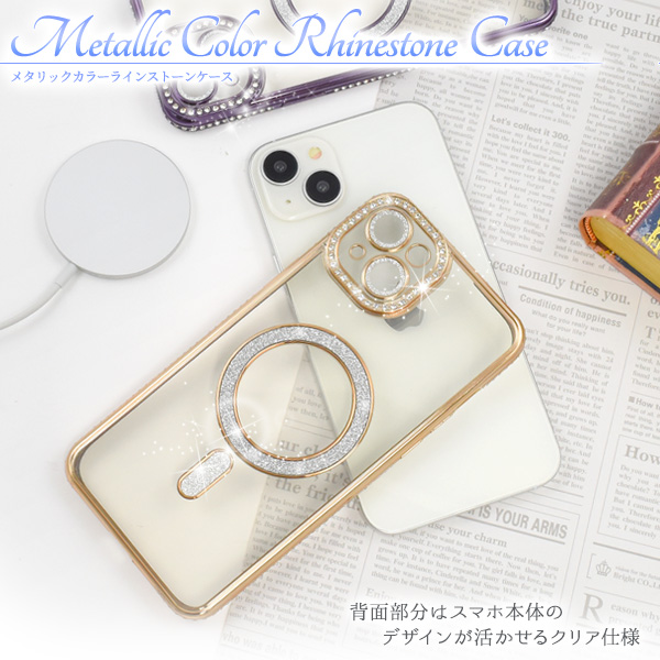 スマホケース iPhone15Plus用 MagSafe対応 メタリックカラー ラインストーンケース きらきら おしゃれ 上品 iPhoneカバー 背面保護カバー 装着簡単 スマホカバー シンプル マグセーフ対応 携帯ケース ケータイケース iPhoneケース ベーシック カジュアル バックカバー