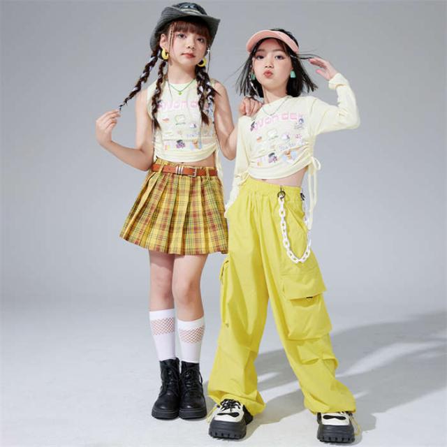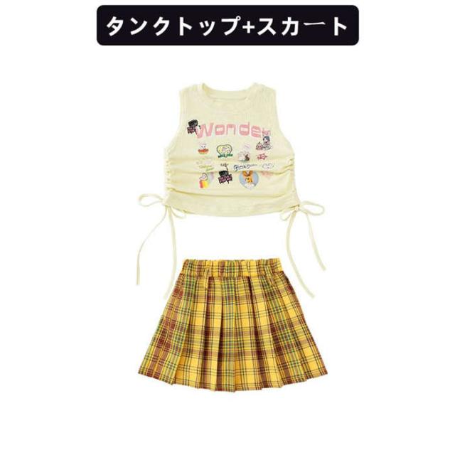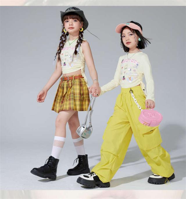 商品名:ダンスウェア 女の子 ダンス服 キッズ ダンス衣装 イエロー 黄色 へそ出しチアガール トップス タンクトップ カーゴパンツ ズボン スカートセットアップ ダンス着 ジャズダンス ステージ 団体服 演出服 ヒップホップ hiphop K-pop ガールズ レッスン着 韓国風子供服 おしゃれ カッコイイ ダンス衣装 イベント衣装 ステージ衣装 踊り 応援団