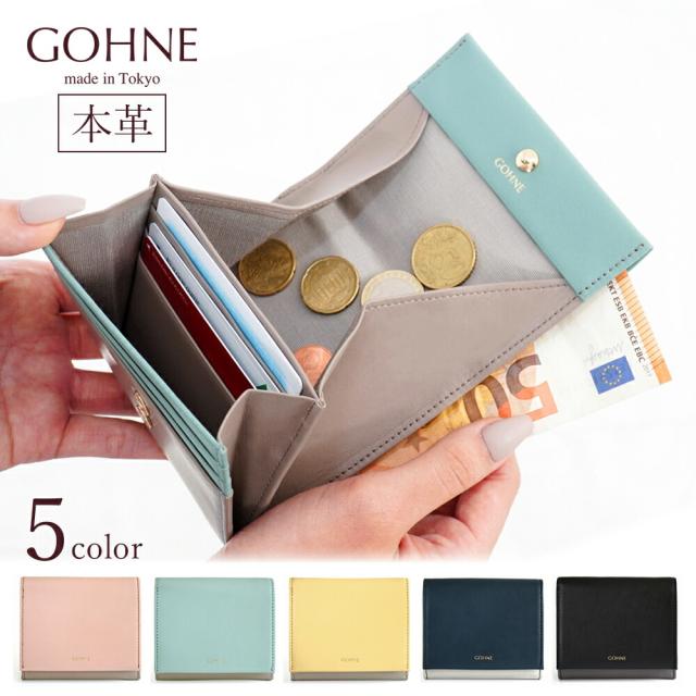 本革 日本製 GOHNE ゴーネ L1001-19A 全5カラー made in Tokyo ギャルソン財布 折り財布 コンパクト財布 ミニ財布 小銭入れ付き 牛革 リアルレザー 国産レザー バイカラー ツートーンカラー