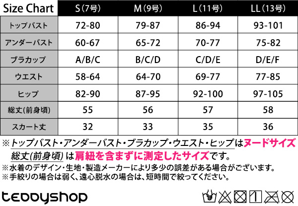 ※トップバスト・アンダーバスト・ブラカップ・ウエスト・ヒップはヌードサイズ、