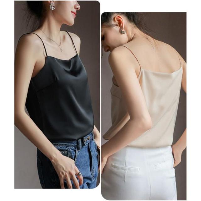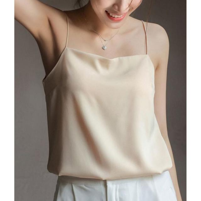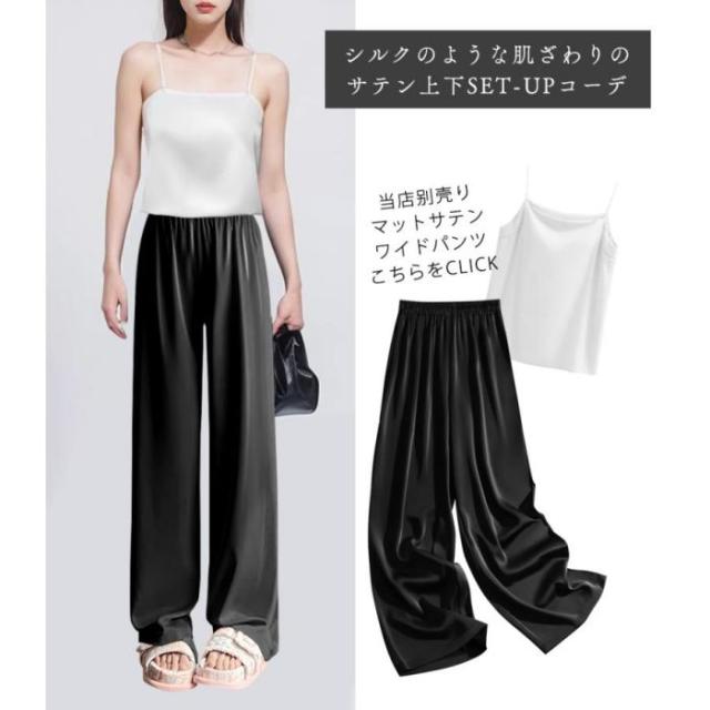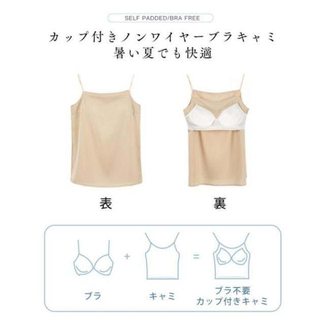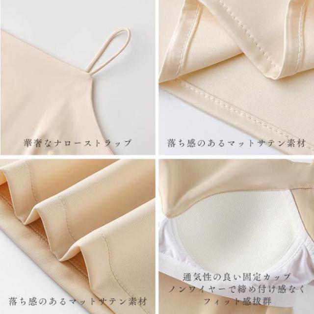 サテン キャミソール カップ付き タンクキャミ ブラトップ 春夏 ブラ レディース ブラ不要 ナローストラップ おしゃれ シルクタッチ