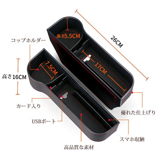 コンソール 隙間 PUレザー 高級仕様 カー用品 便利グッズ 座席 収納 小物入れ カーアクセサリー 差し込みタイプ 運転席 助手席