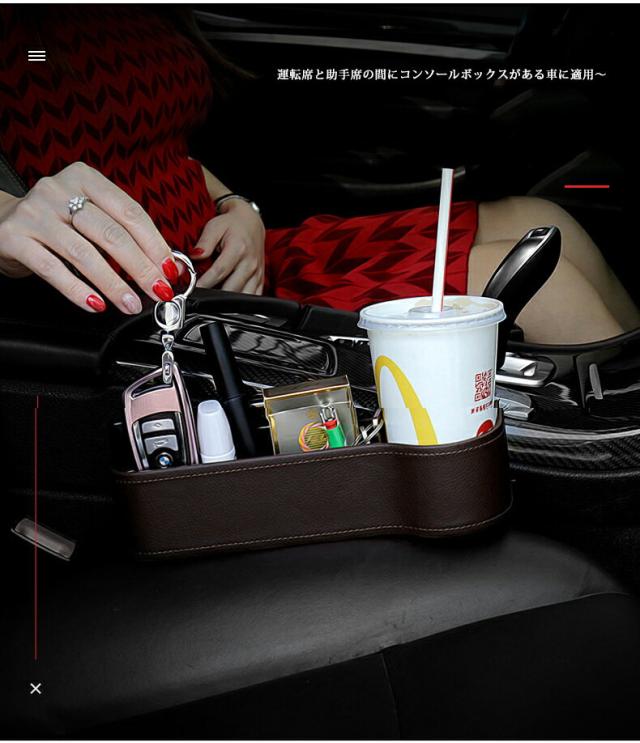 車載 サイド収納ボックス シートポケット 運転席と助手席 2個セット コンソール カップホルダー 車用品 隙間収納 ドリンクホルダー