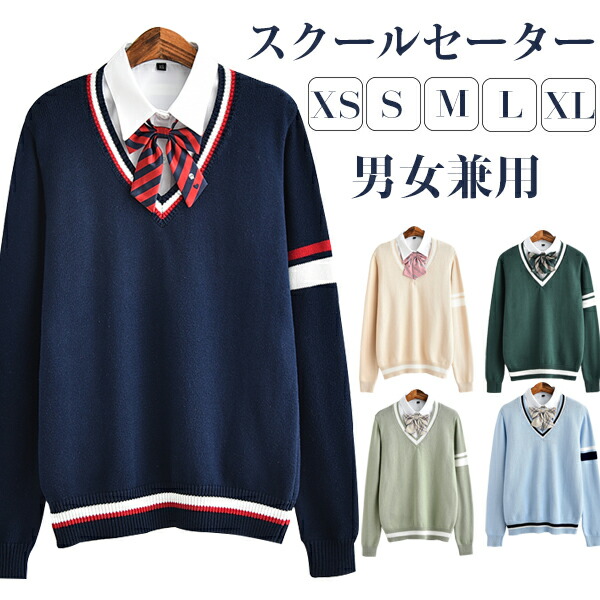 クールセーター 女子 高校生 中学生 Vネック プルオーバー 制服 男女兼用レディースファッション トップス ニット セーター セーター