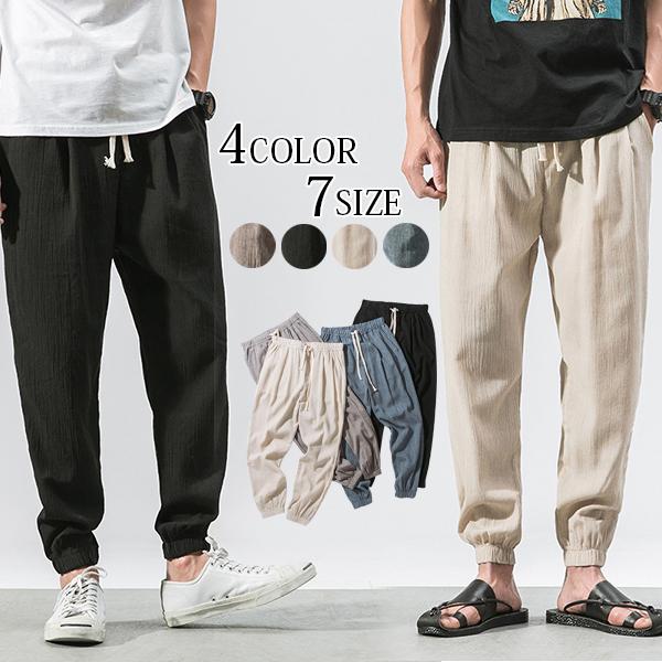 サルエルパンツ メンズ アンクルパンツ イージーパンツ ゆったり メンズ リラックスパンツ リネンパンツ クロップドパンツ 大きいサイズ