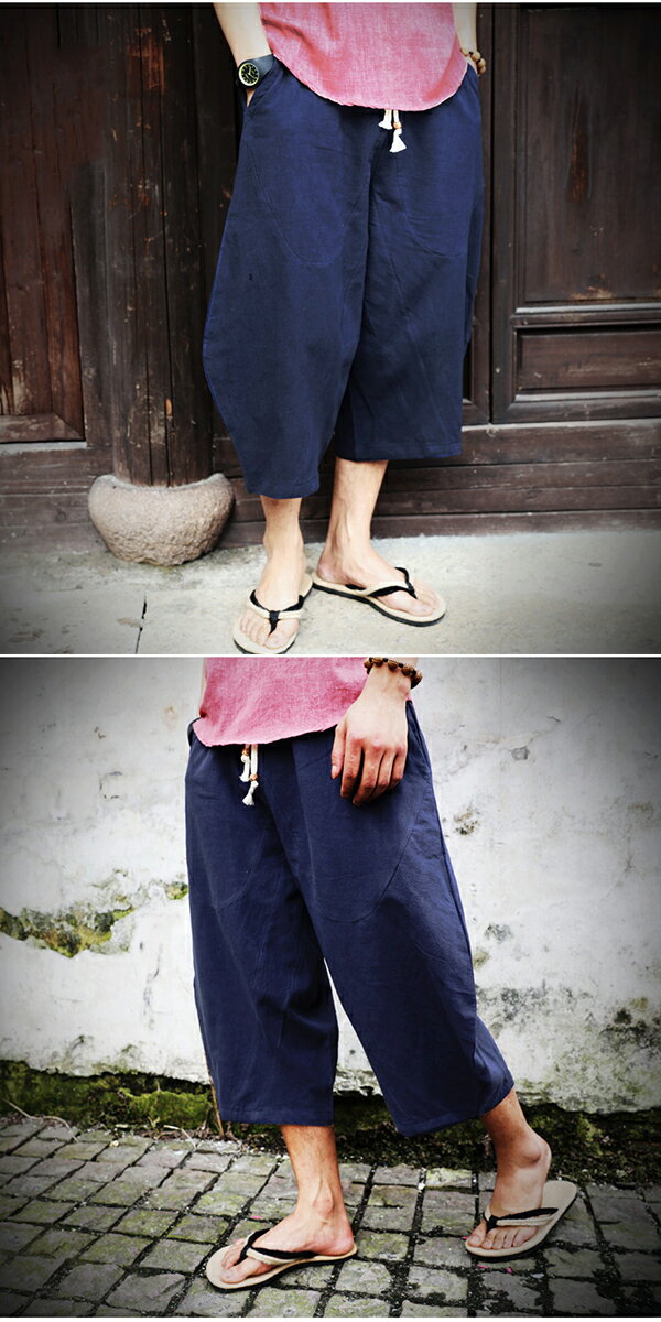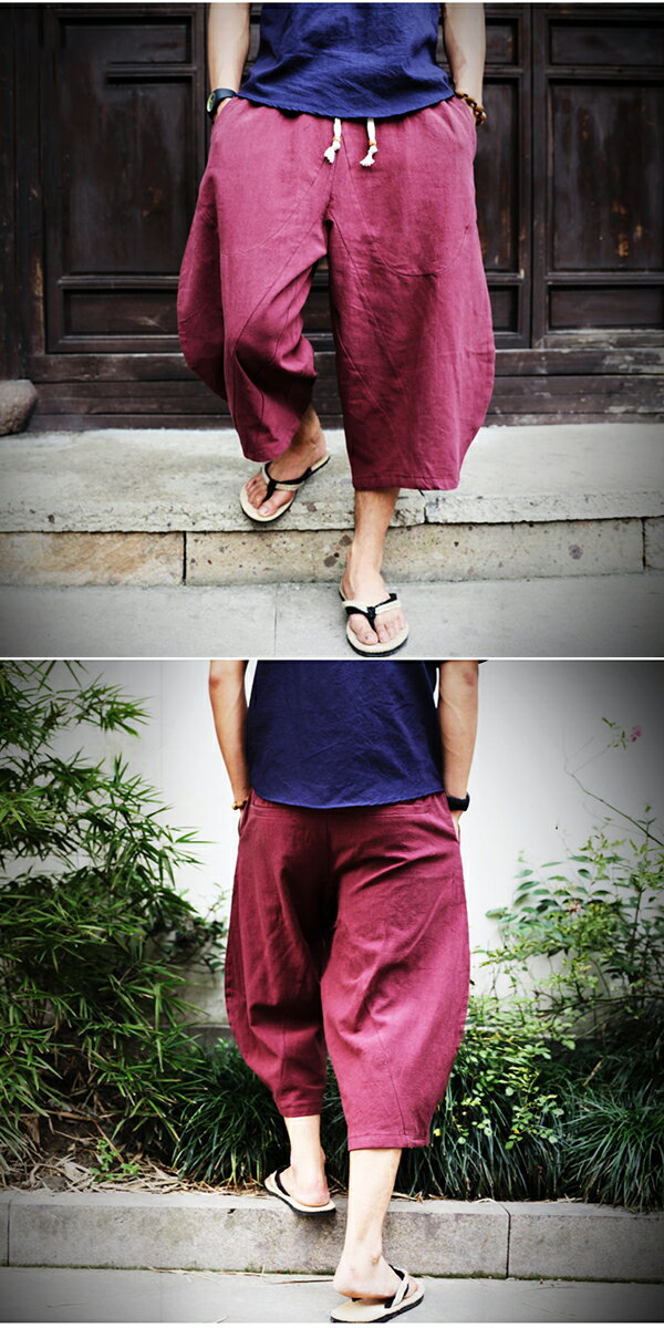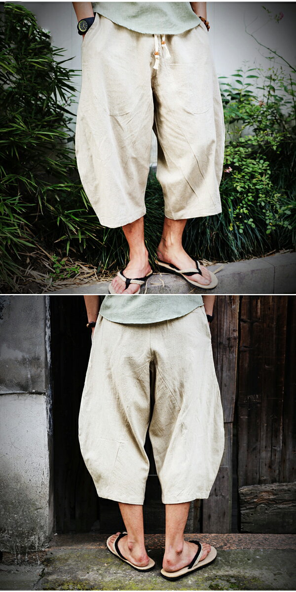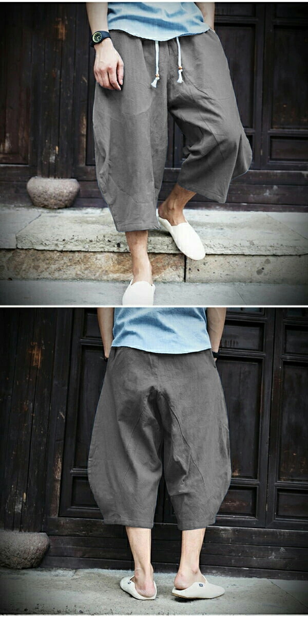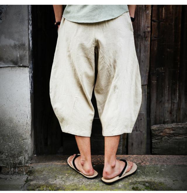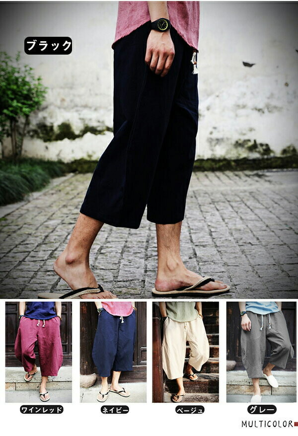 ワイドパンツ メンズ ボトム サルエルパンツ 綿麻パンツ 大きいサイズ ゆったり 涼しい ショートパンツ